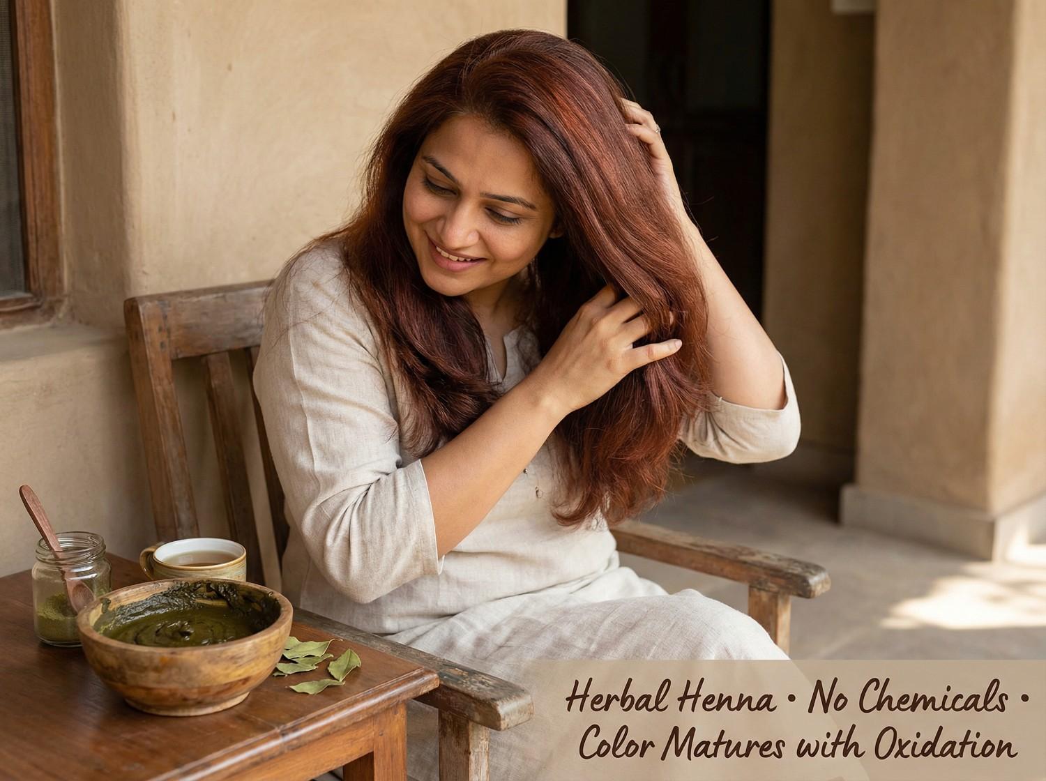 If you’ve ever used herbal henna for hair coloring, you’ve probably noticed a surprising detail: the shade you see right after rinsing isn’t always the shade you end up with the next day. Many first-time users rinse the paste and panic—“Why is it so orange?”—only to see it turn richer and deeper within 24–72 hours. That transformation is usually oxidation, and it’s one of the most important concepts to understand if you want predictable, repeatable results.